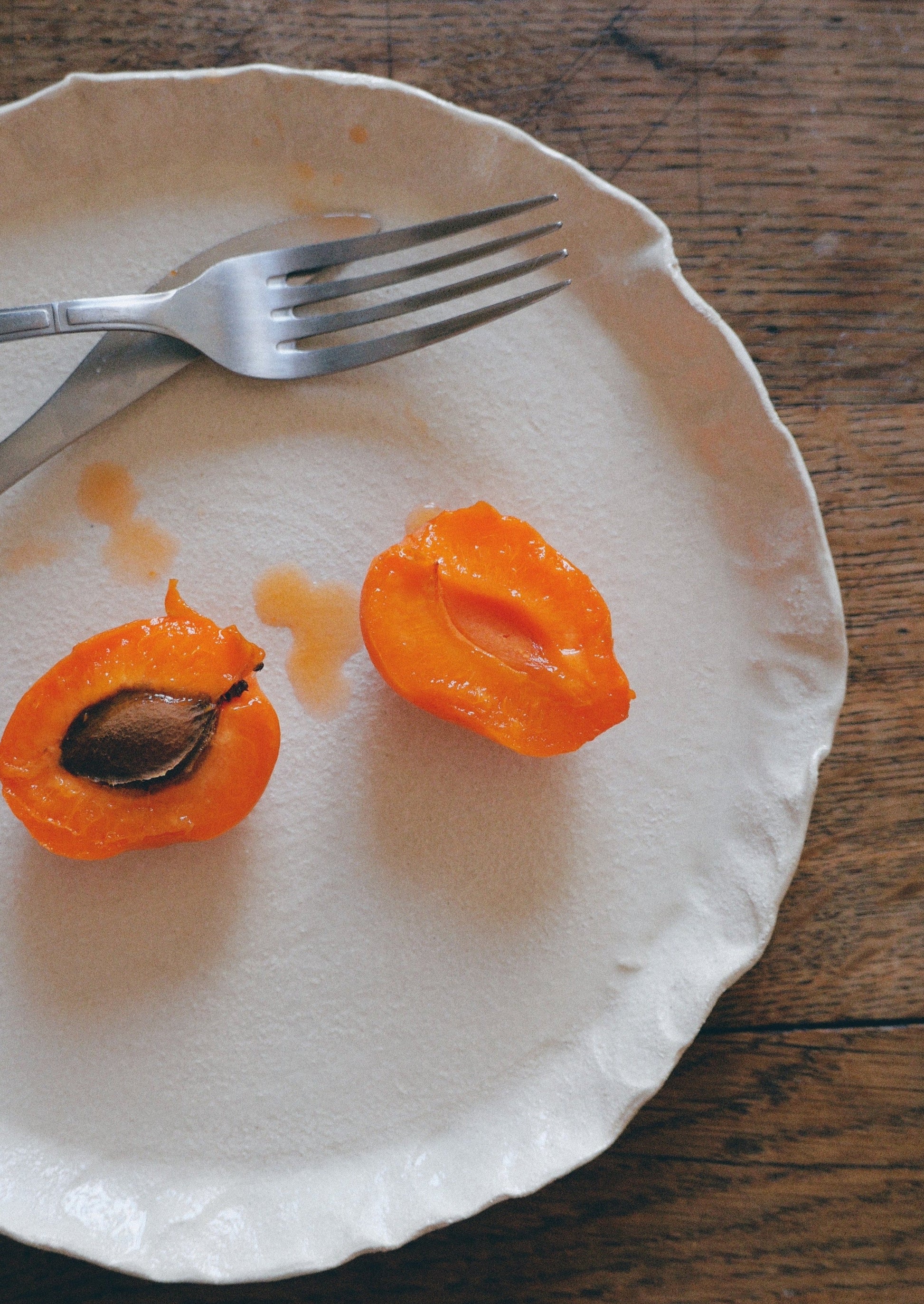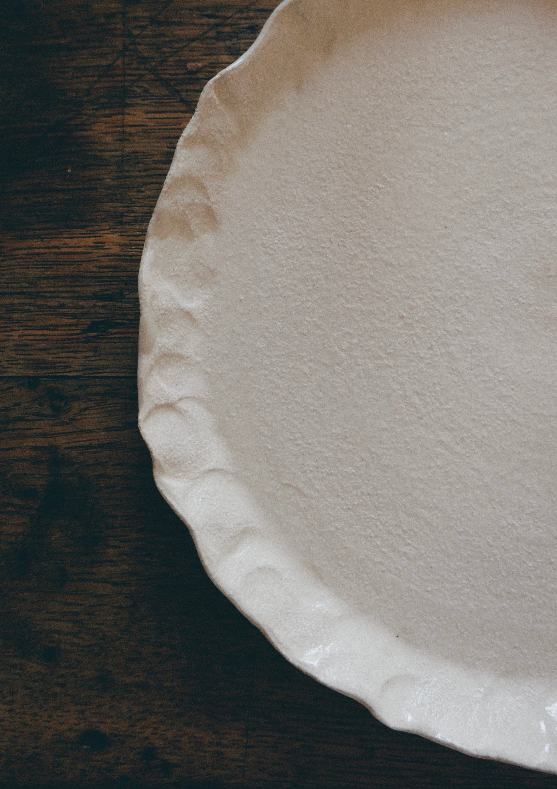 Assiette en grès blanc chamotté, tournée puis modelée à la main.